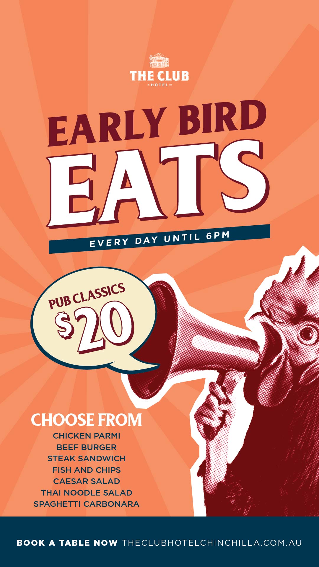 This January, swoop into The Club before 6pm and tuck into your favourite pub classics for just $20.